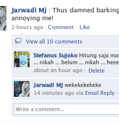 Facebook memang tidak pernah mati dengan inovasi dan fitur fitur barunya. Belum lama banyak di bahas di blogosphere tentang fitur berbalas komentar via email. Mulanya sih tidak menarik bagi saya. Apa untungnya di banding membalas langsung mengikuti link pada notifikasi. Jadi semula saya enggan mencoba fitur ini.