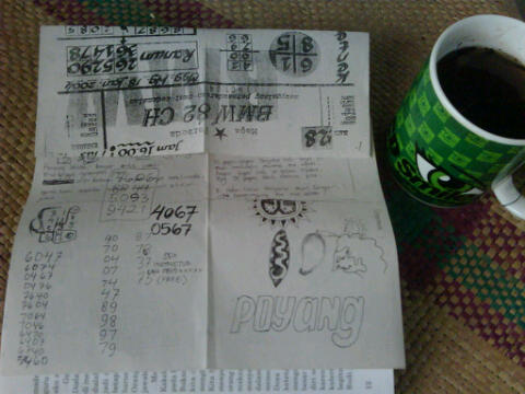Dan foto berikut ini (apa hubunganya) melengkapi ketawa – ketiwi saya siang ini. Sumpah mati saya tidak pernah berjudi nomer togel. Melainkan sebuah kertas yang terselip oleh seorang teman yang pada masa itu meminjam buku ini. Saya meletakan sebagai bagian posting sekaligus memberi ruang bagi artefak 2002 agar menjadi mudah diingat sebagai bagian sejarah.