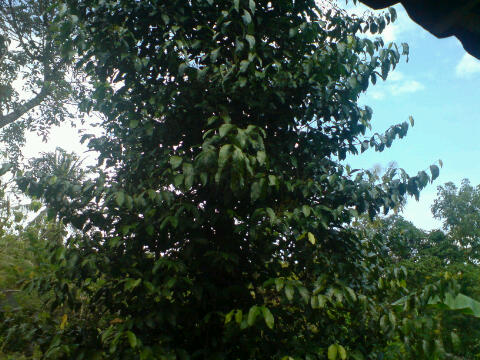Pohon Melinjo di belakang rumah saya ini biasanya sejak pagi sudah banyak burung kutilang dan trotokan yang nongkrong – nangkring berkicau. Tetapi tadi pagi burung – burung pekicau itu pindah tongkrongan. Tidak jauh sih. Masih di pepohonan lain di sekitar kebun milik keluarga.
