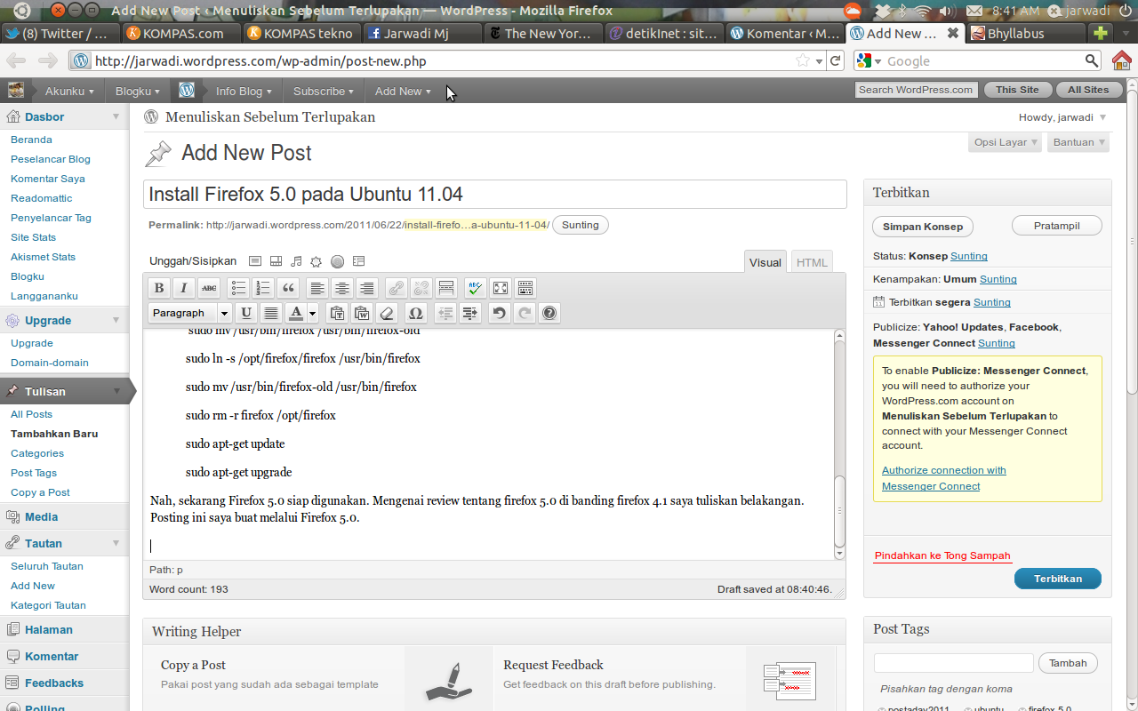 Nah, sekarang Firefox 5.0 siap digunakan. Mengenai review tentang firefox 5.0 di banding firefox 4.1 saya tuliskan belakangan. Posting ini saya buat melalui Firefox 5.0.