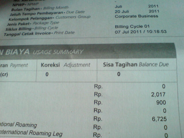 Artinya ada beberapa panggilan yang saya lakukan yang tidak tercatat oleh billing system telkomsel. Alias billing telkomsel sedang error. Jadi untuk pemakaian bulan Juni saya hanya perlu membayar Rp 2.917 + pemakaian SMS + pemakaian BIS.