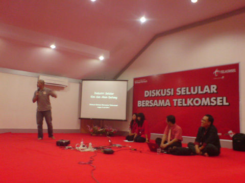 Acara inti sendiri dibuka oleh Pak Maryanto. Beliau adalah Branch Manager Telkomsel Yogyakarta-Solo yang baru hampir satu bulan menggantikan Pak Iqbal Adriansah. Hal yang menarik dan menurut saya cukup inovatif dari Pak Maryanto adalah komitmennya untuk memperbaiki layanan data Telkomsel di area Yogya-Solo. Ini kabar bagus.