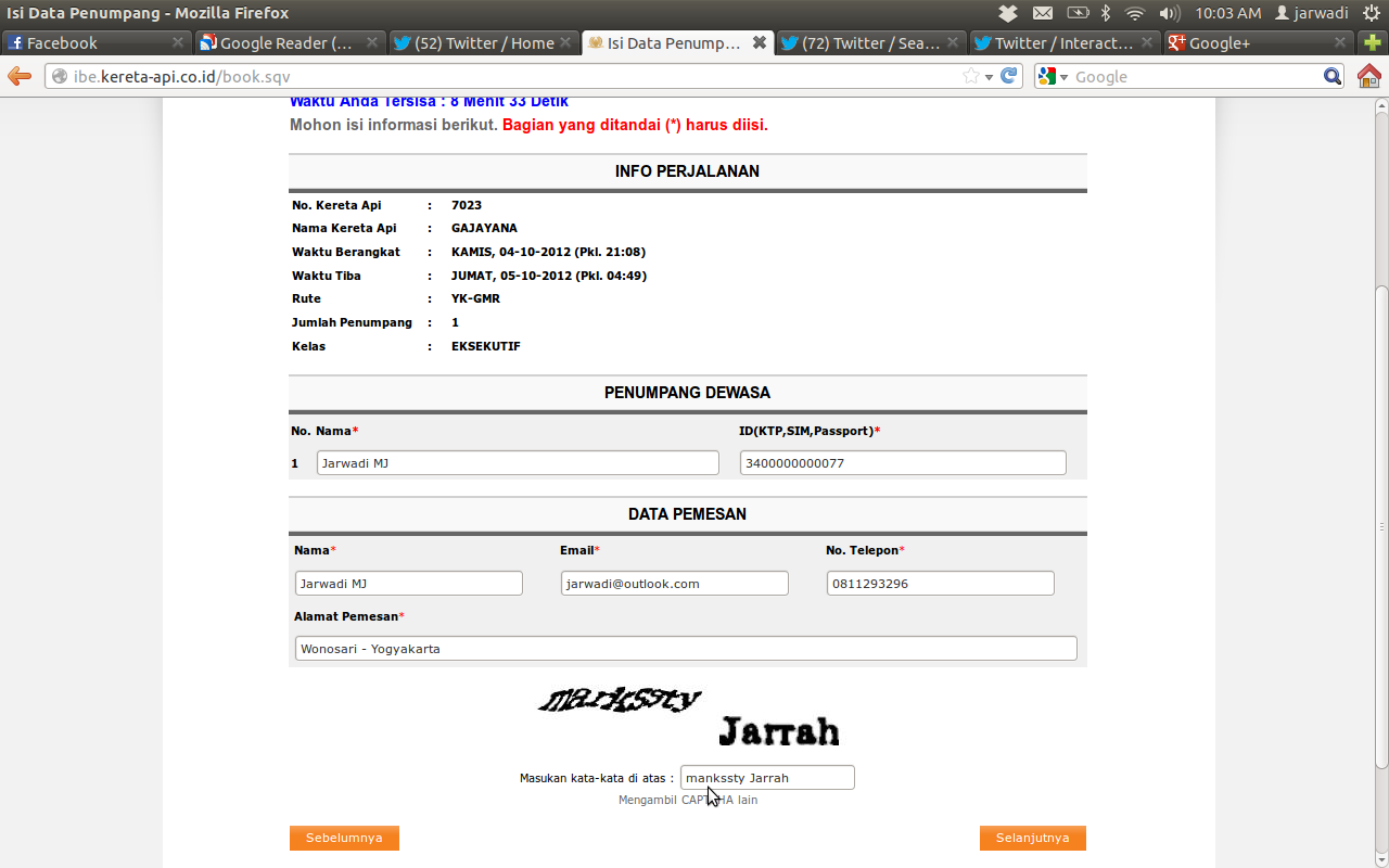 Masukan data diri selengkap-lengkapnya. Nama penumpang jangan sampai berbeda dengan nama yang tertera pada identitas KTP/SIM yang dibawa.