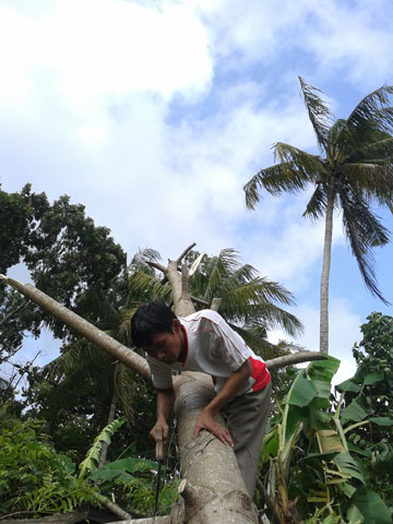 Seperti kemarin warga di desa dimana saya tinggal segera menyingkirkan pepohonan yang tumbang dan segera memperbaiki atap-atap rumah yang rusak tertimpa pohon. Atap rumah yang bocor tentu saja harus diperbaiki segera. Akan tidak nyaman sekali air hujan menerobos masuk rumah melalui bocoran atap.