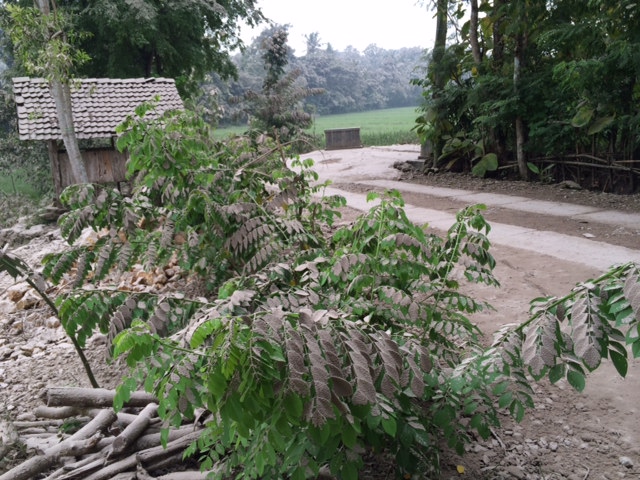 Hujan abu nampak melebat pada sekitar pukul enam sampai pukul delapan. Jalan-jalan nampak berubah memutih, atap-atap rumah, daun-daun pohon pun begitu. Sampai banyak ranting dan dahan yang patah karena tidak kuat menahan abu yang menumpuk di dedaunan.