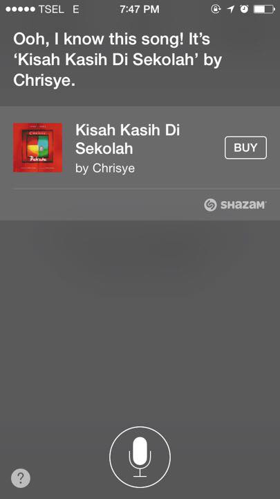 Ada kemampuan baru yang ditambahkan Apple kepada nona Siri dalam upgrade iOS 8 yang bulan lalu saya pasang. Kemampuan itu adalah kemampuan Siri mengenali lagu-lagu yang diperdengarkan. Beberapa lagu barat yang saya coba tanyakan kepada Siri bisa dijawabnya dengan baik. Iseng lagi menjajal telinga Siri dengan lagu-lagu Indonesia, ia pun berhasil mengenali lagu-lagu Chrisye, Nicky Astria dan lain-lain. Sedikit sayang, Siri belum mengenal lagu campur sari terhosor karya Manthous sang maestro. 😀