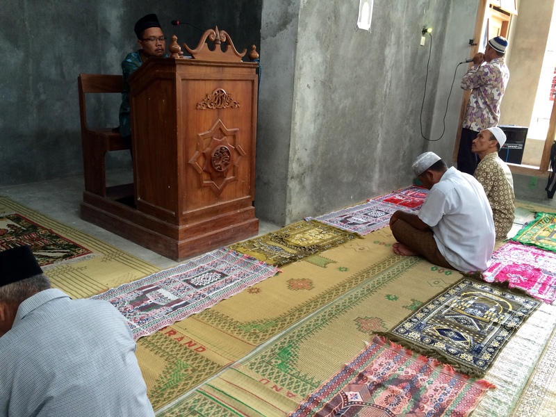 Khatib Jum’at telah mengucapkan salam khotbah pertamanya. Muadzin mengumandangkan seruan adzan. Beberapa jamaah nampak telah duduk, siap mendengarkan khotbah. Di depan mimbar khotbah nampak shaf yang belum terisi penuh. Saya berdiri beberapa shaf di belakangnya menunggu adzan selesai, sambil memotret foto di atas. Usai kumandang adzan saya ingin shalat tahiyatul masjid dulu sebelum duduk mengengarkan khotbah.