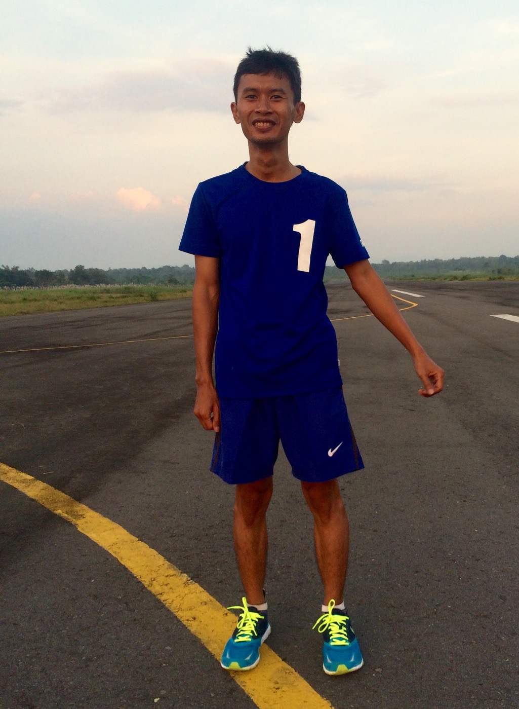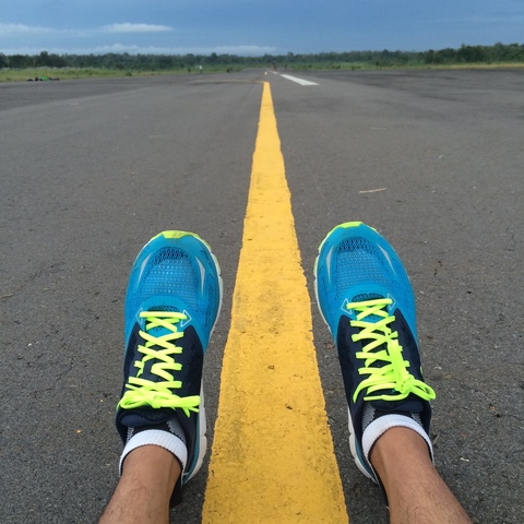 Saya berlari di Lapangan Udara TNI AU Gading. Bedanya dengan lari pertama saya adalah saat itu sore habis hujan. Aspal landasan pacu yang halus itu masih basah. Sepatu ini terasa sangat licin ketika saya berusaha meningkatkan kecepatan.