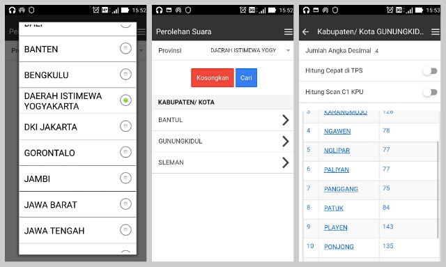 Proses unduh, pasang seharusnya berjalan cepat. Jalankan aplikasinya dan kita akan diminta memilih Propinsi, Kabupaten/Kota, Kecamatan, sampai Desa/Kelurahan dimana kita tinggal.
