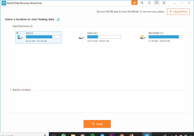Ketika software ini dijalankan, semua drive yang terpasang di komputer akan tertampil. Pengguna tinggal memilih dimana lokasi kecelakaan, kemudian menekan tombol “Scan” untuk memulai proses pemulihan. Tanpa perlu melakukan pengaturan-pengaturan yang bagi orang panik kehilangan file penting malah menjadi kebingungan tambahan.