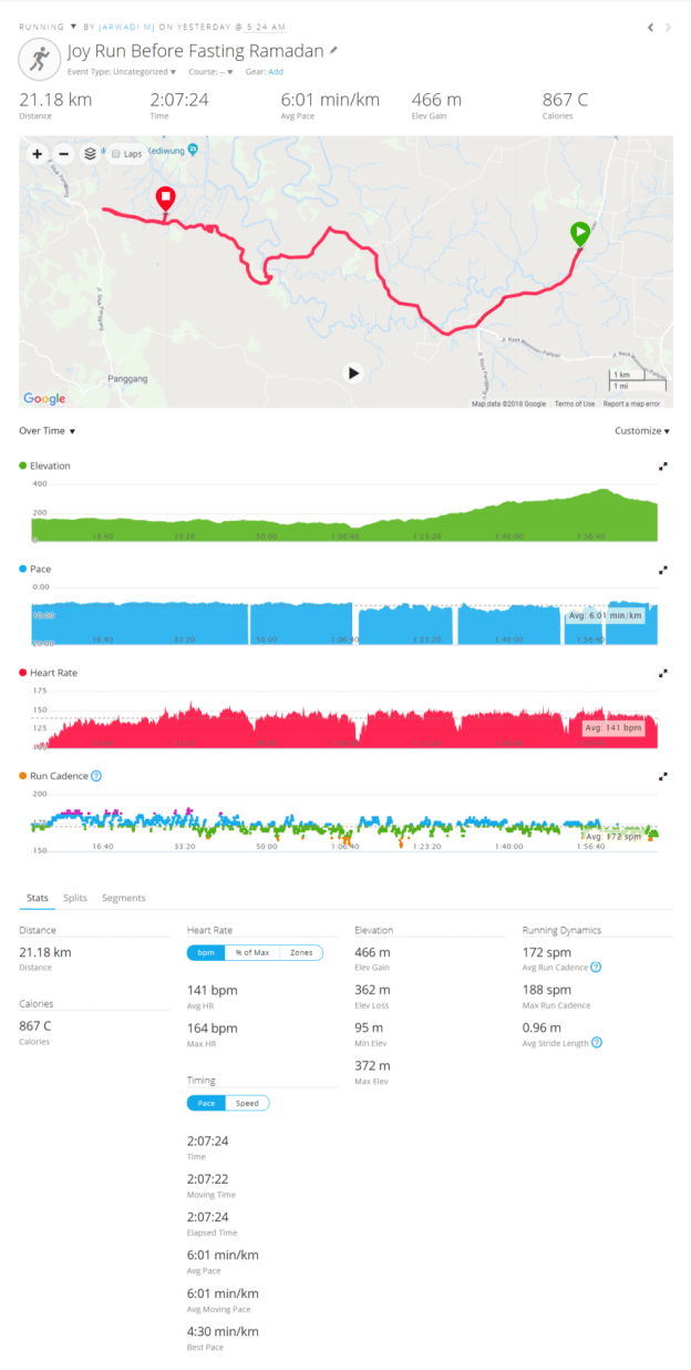 Bisa jadi kemarin merupakan lari terjauh saya dalam satu bulan ke depan. Joy Run ke alam terbuka yang memang sudah saya rencanakan sejak cukup lama. Mengingat mulai hari ini sampai 30 hari yang akan datang adalah Ramadan dimana saya menunaikan ibadah puasa sebulan penuh.