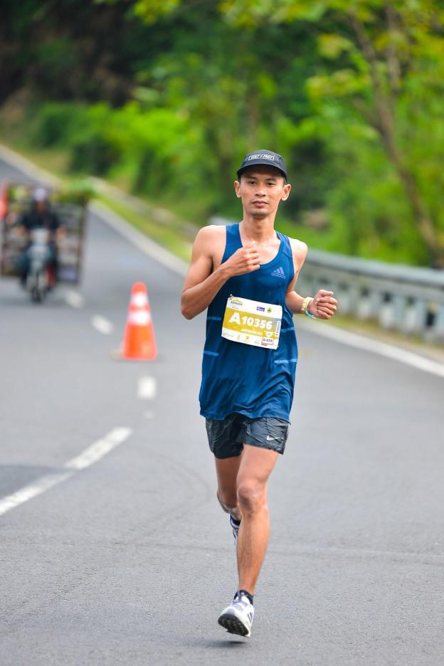 Menahan sakit saya hampir tergoda dnf. tapi saya mendadak sakit hati ketika di km 38 ditikung bu siti muawamah. Masa iya saya kalah sama ibu ibu berusia 53 tahun.