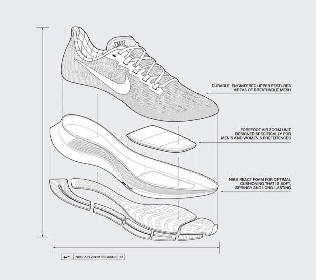 Berdasarkan masukan dan feedback yang diberikan oleh atlit dari berbagai macam latar belakang saat mencoba prototype Pegasus 37 kini Nike membuat sepatu dalam 2 versi yang berbeda. Perbedaan under the hood yang benar – benar memberikan karakter sepatu yang berbeda diberiakan di bagian air bag atau Zoom Unit.