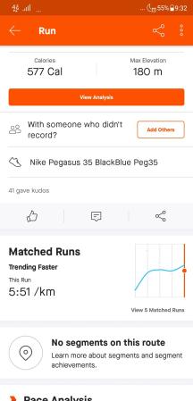 Stava merekam aktivitas olahraga kita secara detil. Untuk melihat detil itu kita tinggal men-tap salah satu rekaman olahraga. Sebagai contoh saya memilih “Morning Run”. Strava memperlihatkan detil berupa: jarak (distance), laju rata-rata (avg pace), waktu bergerak (moving time), elevation gain, kalori yang terbakar (calories), ketinggian maks (max elevation).
