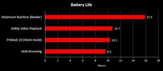 ROG Zephyrus G14 (GA401) mempunyai performa battery yang luar biasa. Laptop gaming ini bisa digunakan untuk membaca-baca sampai 15.9 jam. Mencapai lebih dari 10 jam untuk memutar video 1080p dan pengujian PCmark 10 (work mode), sangat cocok ketika saya gunakan di kantor untuk tugas sehari-hari. Untuk Web Browsing laptop ini bisa digunakan sampai 9.6 jam. Suatu laptop gaming yang juga bisa digunakan secara penuh bagi pekerja kantoran seperti saya bekerja mencapai 8 jam per hari, bila tidak ada tugas lembur. 🙂