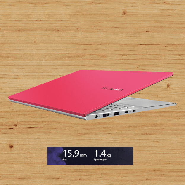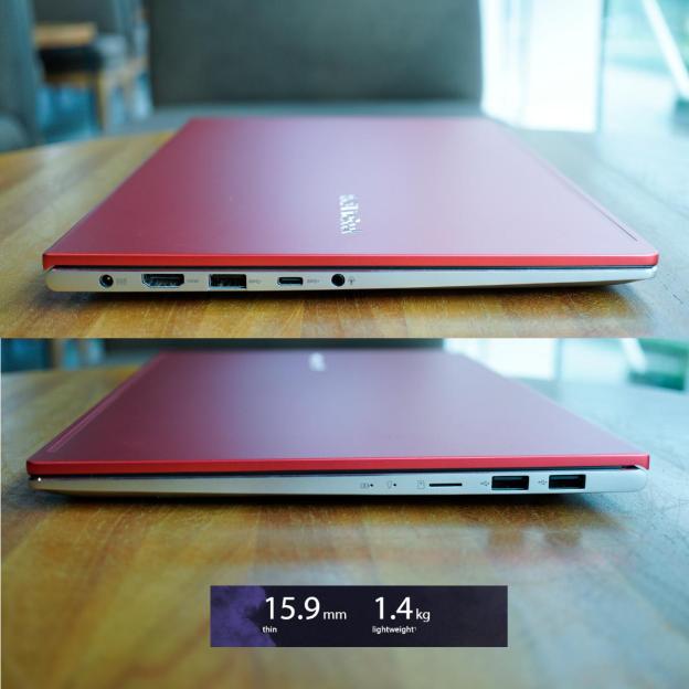 ASUS VivoBook S14 merupakan laptop yang paling ringan di kelasnya. Berbobot hanya 1,4 kg dan dengan ketebalan hanya 15,9 mm.