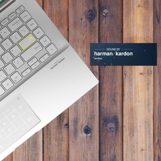 Bahkan tata suara laptop VivoBook S14 S433 sistem tata suaranya telah dikalibrasi dan mendapatkan sertifikasi kualitas dari Harman Kardon.