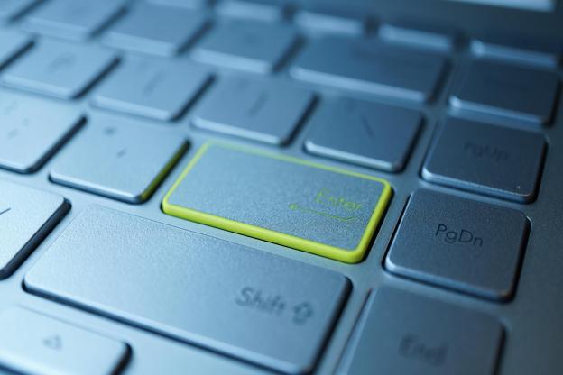 Tombol Enter di keyboard laptop ini dibuat mencolok dengan memberikan warna hijau volt yang nampak menyala, bold, seolah ingin menunjukkan bahwa tidak ada keraguan bagi para generasi muda.