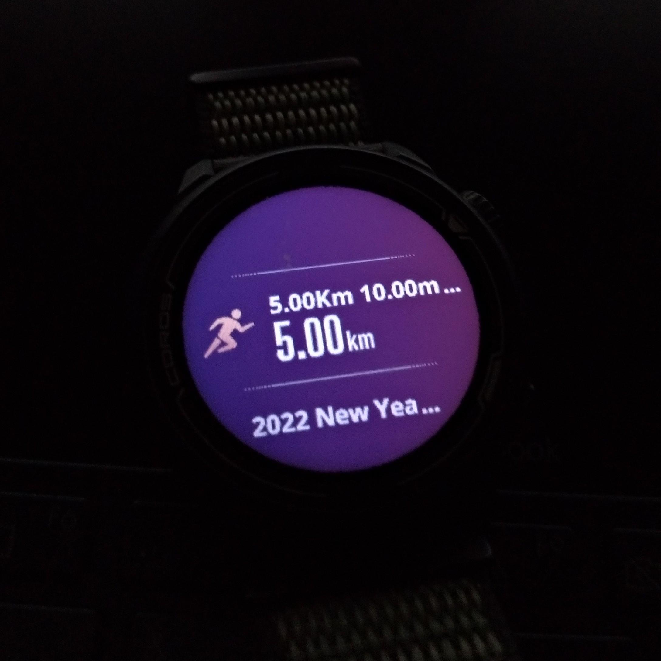 Pilih dan tekan tombol Start kemudian. Workout ini akan secara otomatis berhenti/selesai setelah kita berlari sejauh 5.00 km tepat.