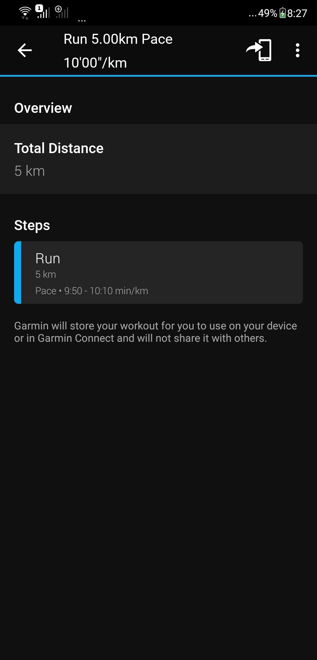 Bila Anda malas atau masih kebingunan mengikuti langkah-langkah saya saya tulis di atas, silakan mendownload file workout yang telah saya buat di SINI. 5.00km Pace 10.00 min/km.
