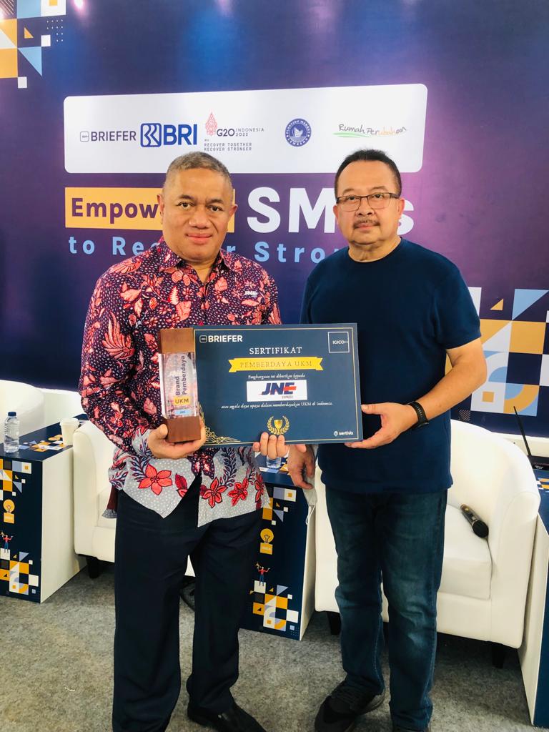 Sehingga tak heran, pada tahun 2022 ini, JNE berhasil merah penghargaan Brand Pemberdaya UKM Kategori Ekspedisi Logistik. Penghargaan prestisius ini diberikan oleh Briefer – IGICO Advisory dan Rumah Perubahan dalam penghargaan “Brand Pemberdaya UKM” kategori Ekspedisi Logistik. Award Ceremony dilangsungkan pada (11/3), penghargaan ini diberikan oleh Prof Rhenald Khasali, Founder Rumah Perubahan kepada Presiden Direktur JNE, M. Feriadi Soeprapto.