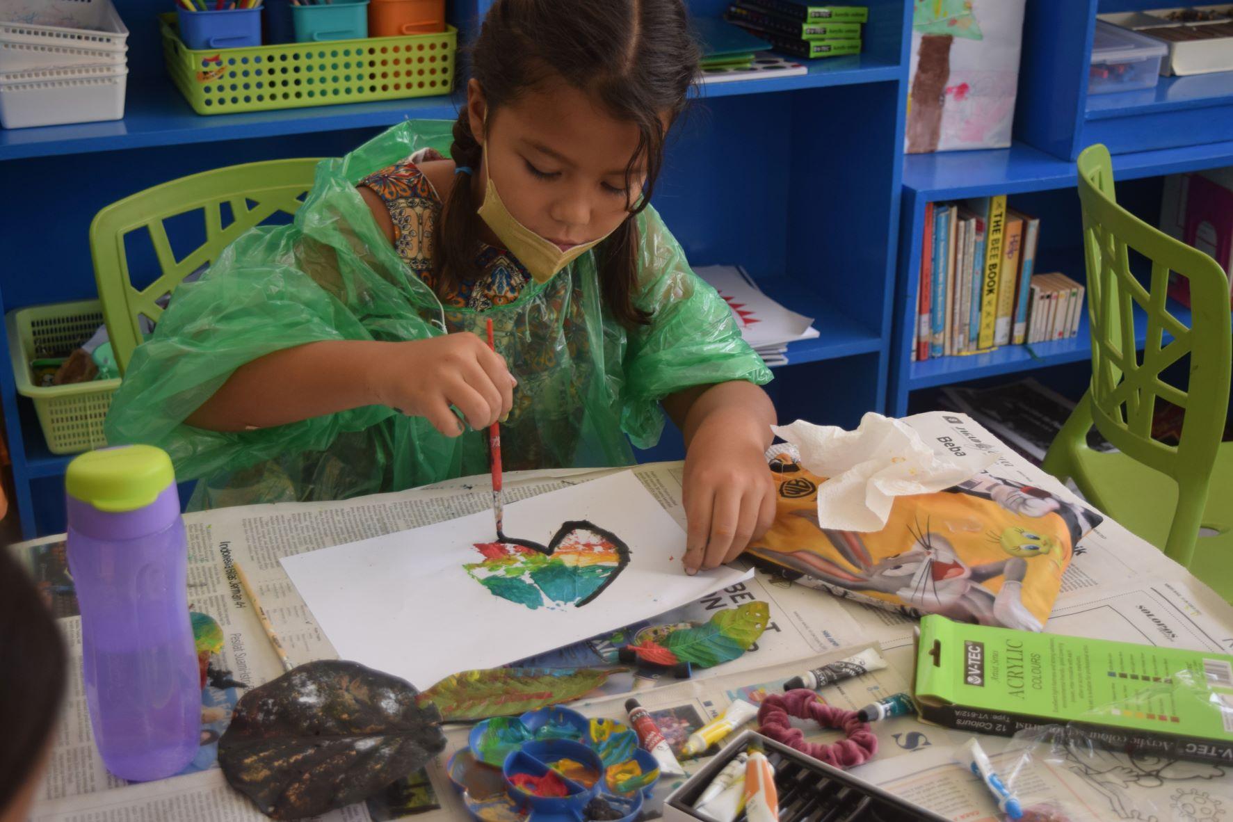 Bentuk kegiatan yang tingkat keterampilannya disesuaikan dengan usianya. Dalam kegiatan ini siswa siswi diperkenalkan dengan warna dan motif untuk penuangan dalam karya sederhana dua dimensi.