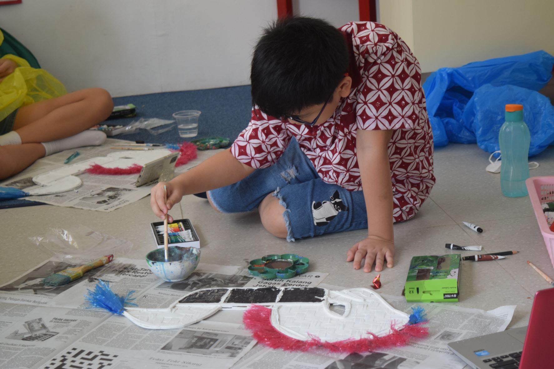 Bambu, baik batang sampai dedaunnnya banyak dikenal telah bermanfaat sebagai media seni, termasuk seni batik printing. Siswa siswi Grade 3-4 ditantang untuk menuangkan kreativitas mereka.