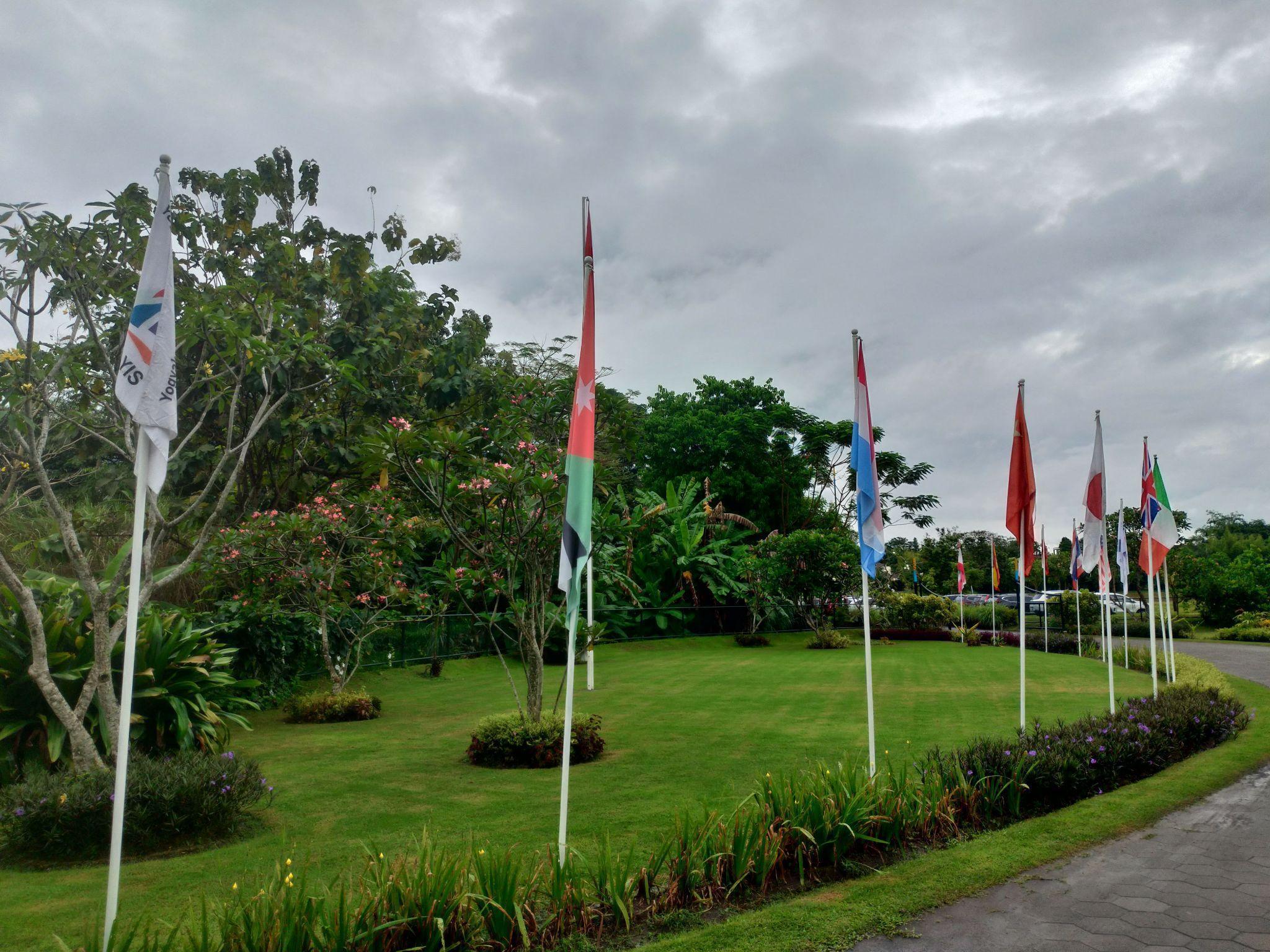 Di bawah gerimis syahdu, petugas keamanan langsung menyambut saya dengan ramah dan mengarahkan kemana saya sebaiknya memarkir kendaraan. Pertama kali menginjakkan kaki di kampus saya langsung mendapatkan kesan yang amat berbeda. Bila di sekolah lain biasanya pengalaman pertama adalah gerbang, lapangan atau lorong, sekolah YIS langsung menyuguhi saya dengan danau kecil yang bersih dengan pemandangan hijau dan ruang terbuka yang amat luas dengan bendera dari banyak negara yang terpasang di antara bendera merah putih. Pikir saya, ini sekolah atau taman, atau kebun belakang?