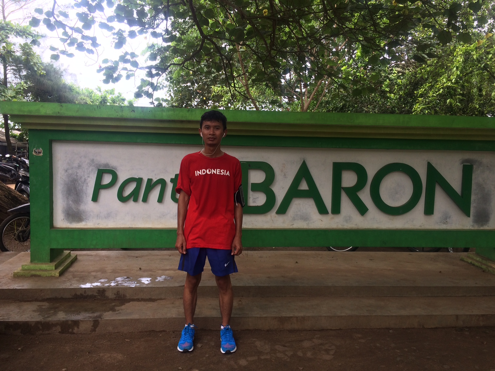 3 km menjelang pantai Baron, gerimis jatuh lagi, dengan butiran-butiran yang lebih besar. Hujan. Ini tantangan untuk daya tahan tubuh saya. Flu yang saya takuti bisa-bisa menyusup bersama hujan. Tapi saya harus terus berlari. Pahala besar sedang saya kejar. Terus berlari 3 km lagi adalah HM pertama saya. 21.2 km pertama saya.